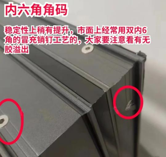 普通斷橋鋁橫梁、立柱連接的時候用螺絲加鋼片,而系統(tǒng)窗會采用注膠的工藝,往型材和角碼之間填充組角膠。